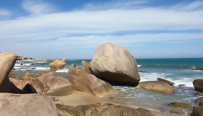 A Natural Mosaic: This kilometer-long stretch of shore is covered with thousands of small, smooth pebbles and stones. Over millennia, the relentless ocean waves polished and shaped these fragments from ancient granite, resulting in a stunning mosaic of colors, including white, black, yellow, brown, and dark purple. The beach truly sparkles when the sunlight hits the wet stones.
