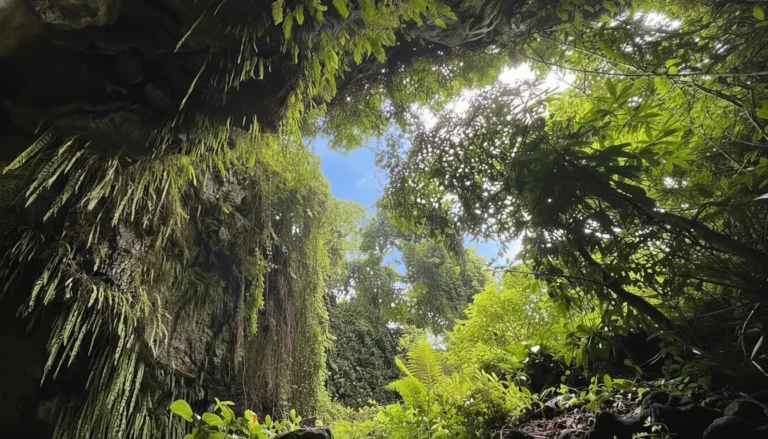 • Biodiversity: The cave entrances and surrounding areas boast a rich biodiversity. You observe lush ferns, mosses, and ancient trees thriving in the nutrient-rich basalt soil, creating a stark contrast with the dark cave interior.