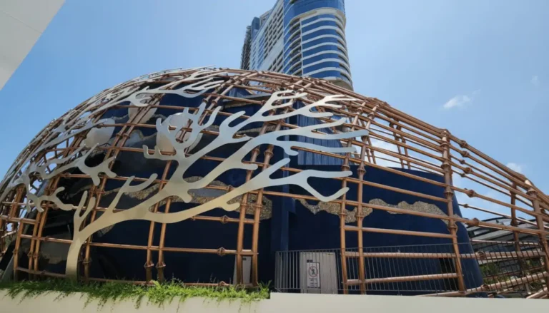 The design of the Đó Theater immediately draws attention. Architects creatively based the structure on the shape of a “Đó”—a traditional Vietnamese fishing basket or trap. This distinctive indigenous architecture, combined with modern, high-tech construction, creates a visually stunning effect, making the theater a recognized record holder for having the “largest indigenous-inspired architecture.” The exterior features decorative motifs resembling coral branches and pearls, seamlessly blending the building with its coastal setting on Nha Trang Bay. The entire complex spans 2,500 $\text{m}^2$ and features state-of-the-art stage mechanics, sound, and lighting systems imported from Europe.
