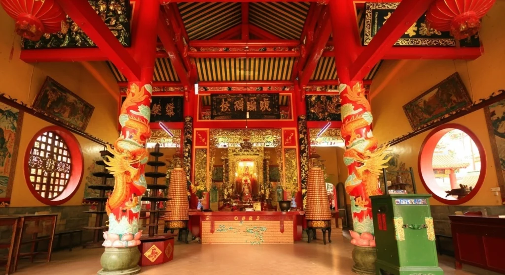• A Feast for the Senses: Step inside, and you’ll be enveloped in a cloud of fragrant smoke from the spiral incense coils hanging from the ceiling, a characteristic feature of Chinese temples. The air is thick with the scent of burning offerings and the sound of quiet chanting, providing an immediate and powerful sensory break from the city’s chaotic noise.