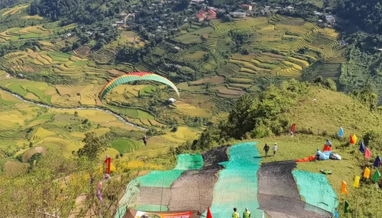 Paragliding Destination: Khau Phạ is internationally famous for paragliding. The altitude and air currents create perfect conditions for flying. The annual “Fly on the Golden Season” festival is held here, attracting pilots from around the world to soar above the golden terraced fields. Tourists can often book tandem paragliding flights from a launch point near the summit.