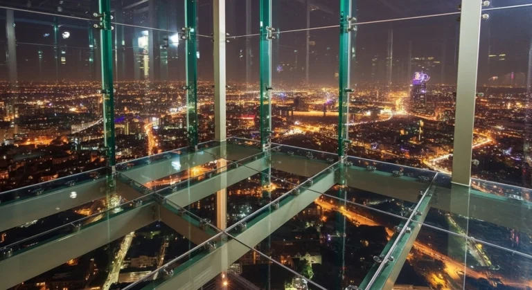 The Sky Walk: The signature feature is the thrilling Sky Walk, a transparent glass-floor walkway extending from the building. Stepping onto the clear glass, 272 meters above the street, provides an exhilarating, ‘walking on air’ sensation and is the most popular photo spot.
