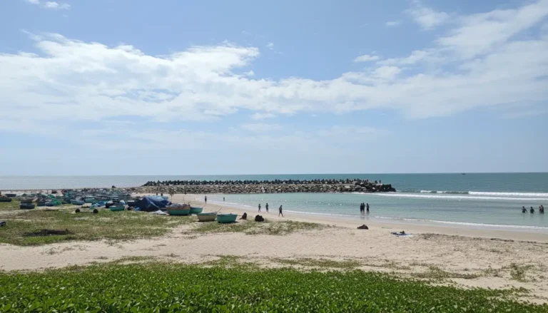 Bãi đá Ông Địa (Ong Dia Rock Beach) serves as one of Phan Thiet City’s most accessible and photogenic seaside locations. Situated along the main coastal road, Nguyễn Đình Chiểu, it marks the transition between Phan Thiet’s urban center and the resort stretch of Hàm Tiến and Mui Ne. The name, which translates to “Mr. Dia’s Rock Beach” (referencing the God of the Earth or a local deity), stems from an ancient rock formation that purportedly resembled the benevolent figure, making the area a historically sacred spot for local fishermen.