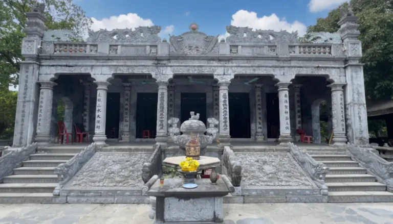 Greenstone Construction: The temple’s distinctive feature is its extensive use of greenstone for pillars, altars, and courtyards. Local craftsmen intricately carved these monolithic stone pieces with elegant figures and traditional motifs, showcasing the sophisticated craftsmanship of the Trần Dynasty era.