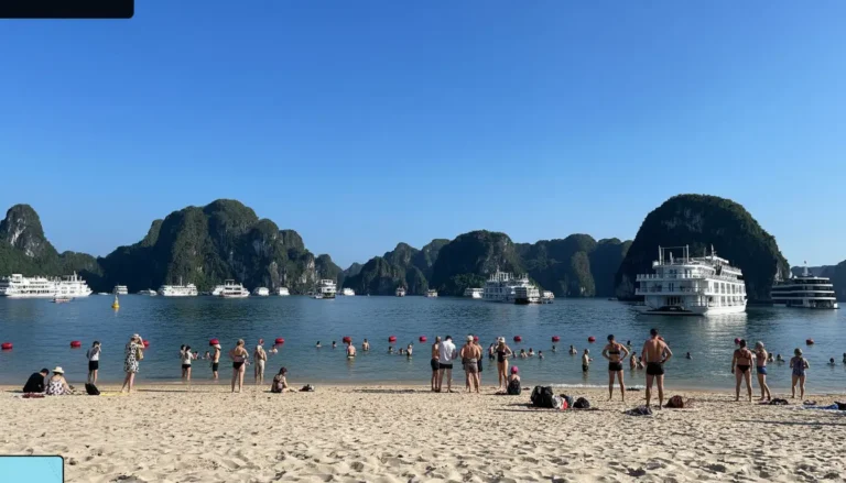 Ti Top Island stands as one of the most famous and essential stops on any Ha Long Bay itinerary, attracting visitors with its dual appeal: a pristine beach and a spectacular panoramic viewpoint. You can easily find the island about 7 to 8 kilometers southeast of Tuần Châu Port. This unique landmark offers a perfect blend of adventure and relaxation.