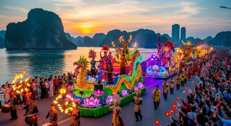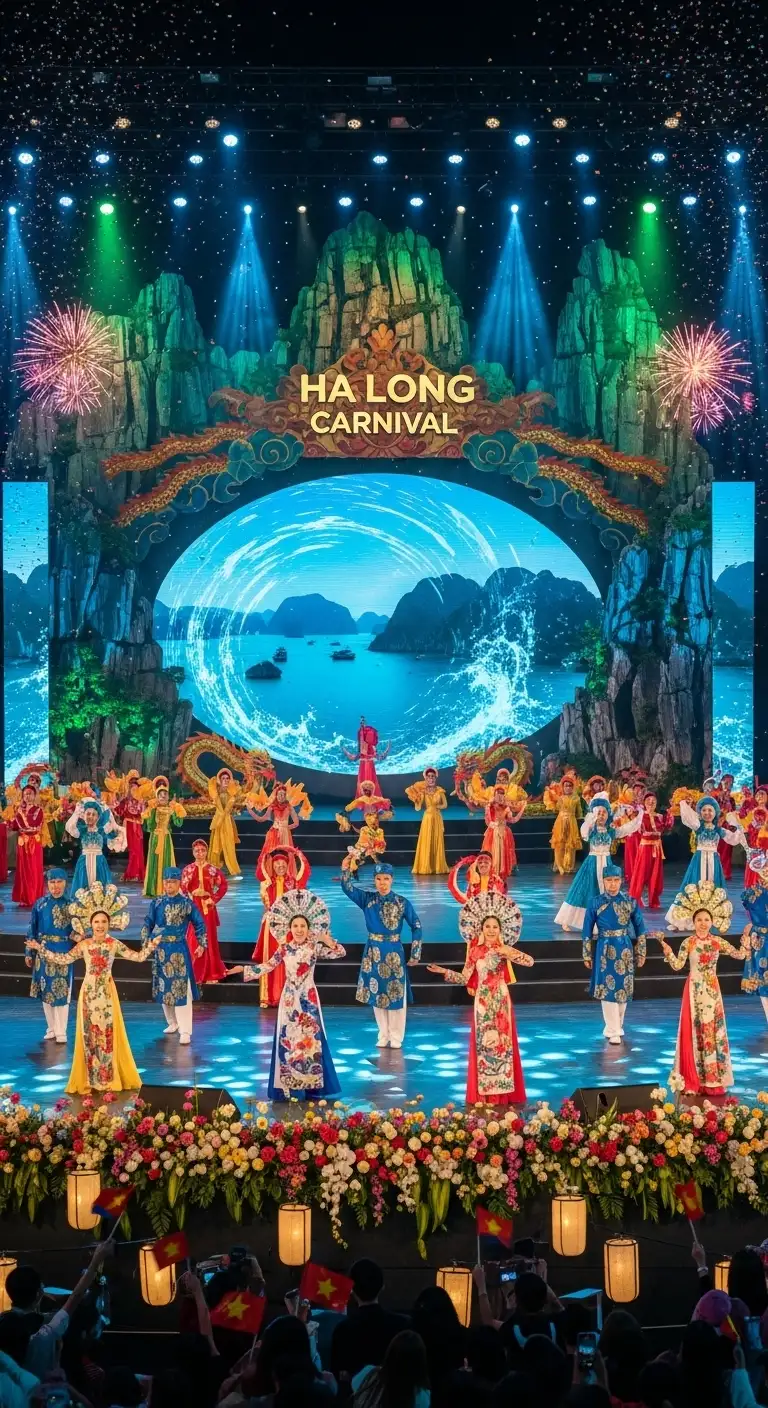 The Hạ Long Carnival is the signature cultural and tourism event of Quảng Ninh Province. Launched annually with the theme of blending tradition and modernity, the festival is a vibrant, large-scale spectacle designed to showcase the beauty of Hạ Long Bay (a UNESCO World Natural Heritage Site) and promote the region as a major international tourist hub.