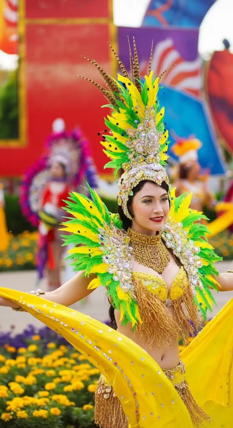 Costumes and Dance: Thousands of local actors, students, and dancers participate, clad in flamboyant, colorful costumes that blend carnival aesthetics with traditional ethnic attire, creating a joyous and energetic atmosphere along the coast.