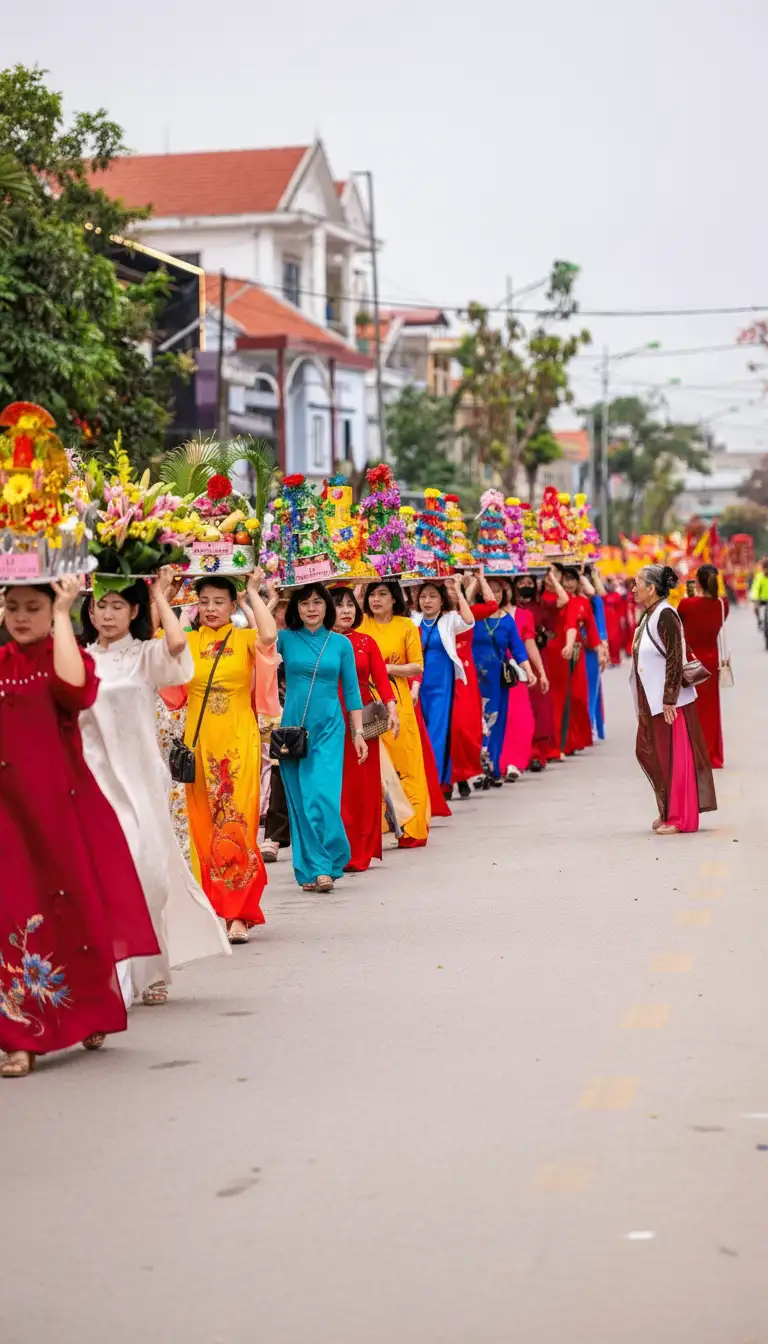 Statue Procession: A major highlight is the solemn procession of the statue of General Trần Hưng Đạo, the hero of the 1288 victory, from his temple to the Yên Giang Communal House. This large procession stretches across the town’s streets, drawing crowds of respectful attendees.