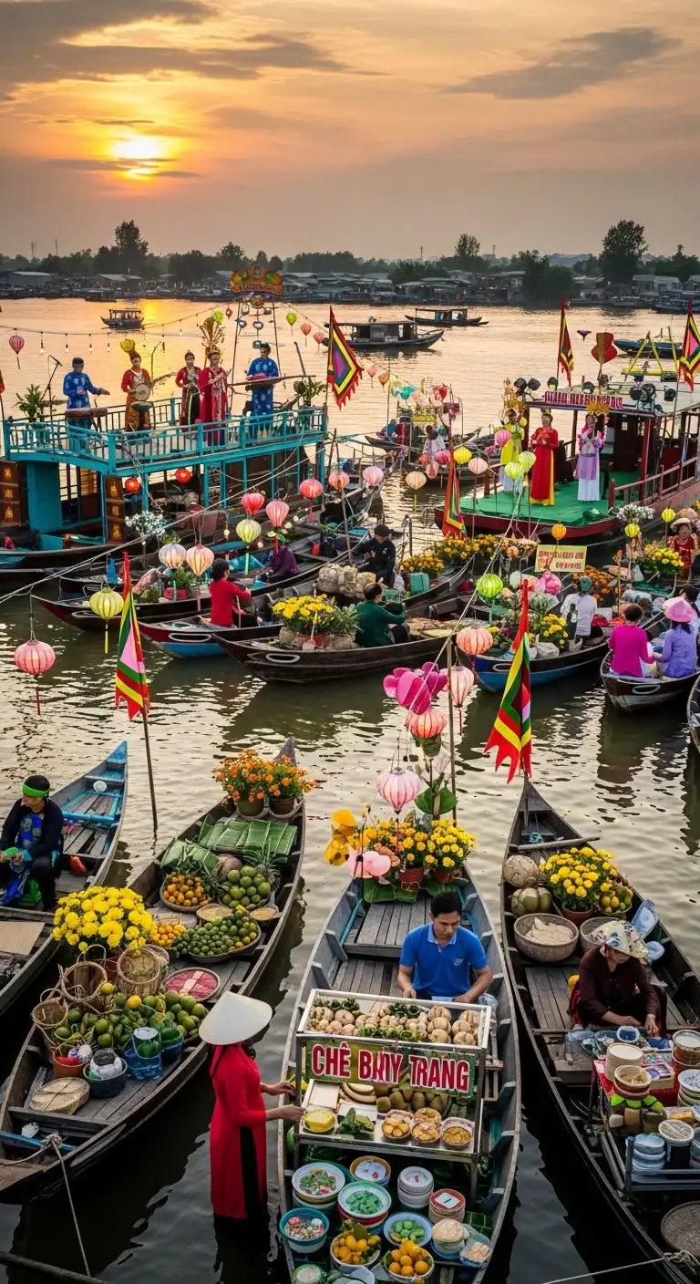 Amateur Music (Đờn Ca Tài Tử): Traditional Southern Vietnamese folk music, often performed on floating stages or boats, is a highlight, showcasing the musical heritage of the Mekong region.