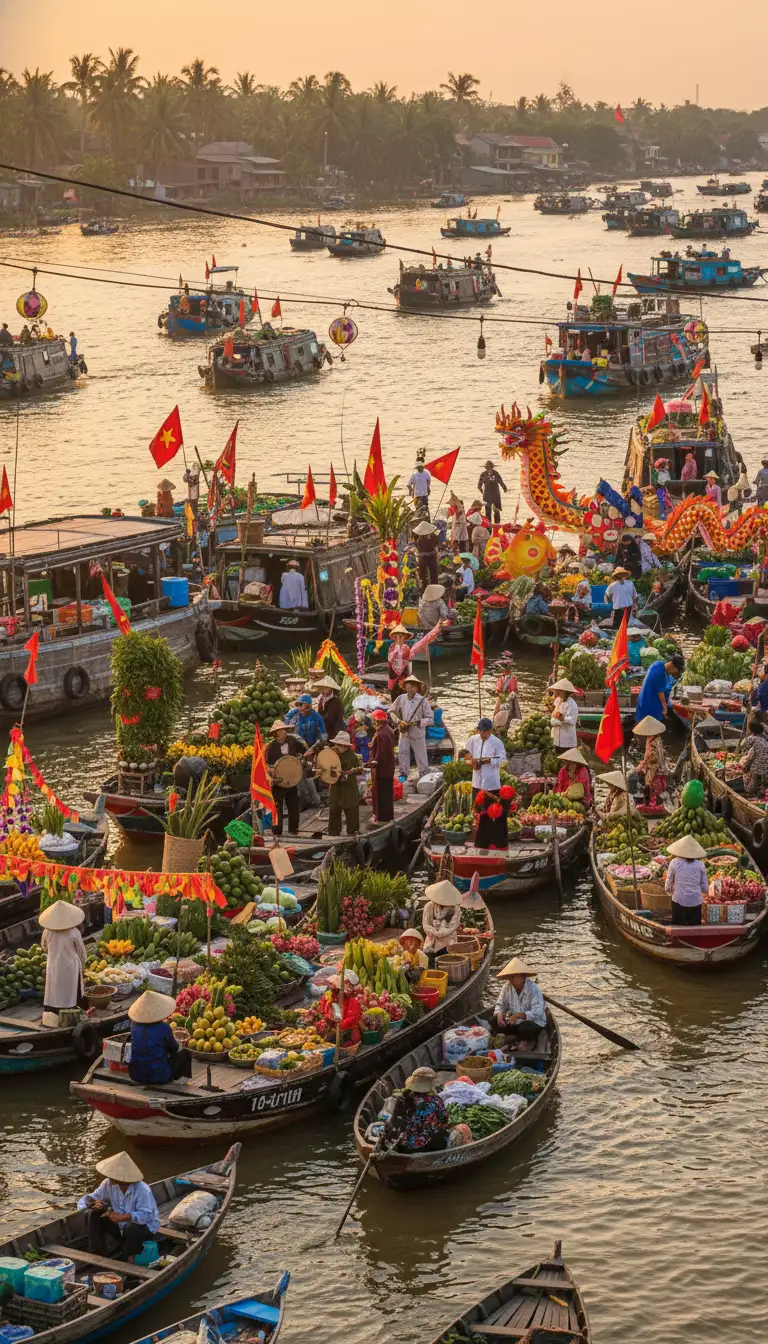 Culinary Competition: Local chefs compete to showcase the best of Mekong Delta cuisine, often featuring specialties like bánh xèo (savory crepes) and fresh seafood.