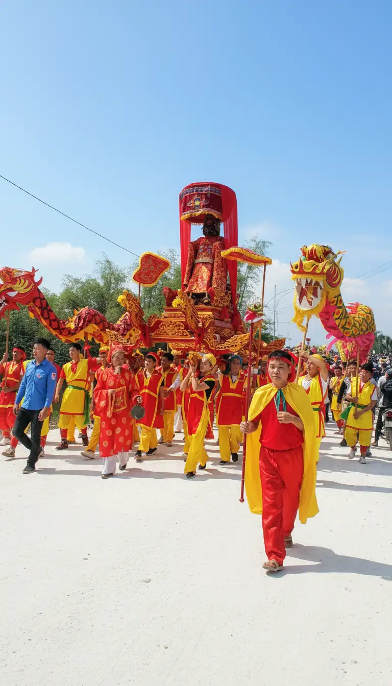 A Showcase of Piety: Nine villages participate in carrying the palanquins, offerings, and banners along the route to Đa Hòa Temple.