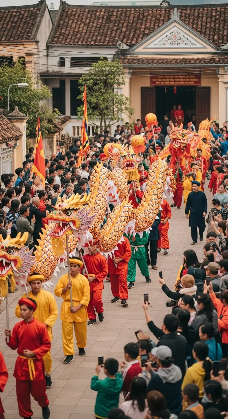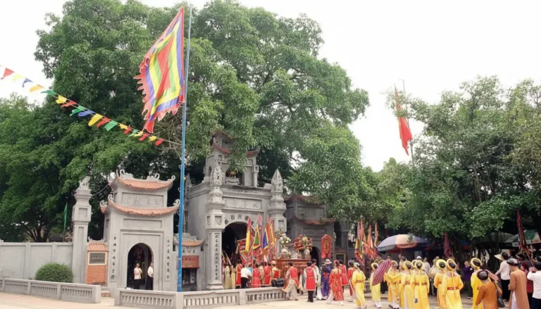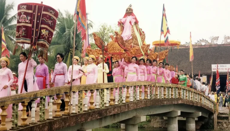The Ritual: A long, colorful procession involving hundreds of pilgrims from the nine surrounding communes travels along the Red River dyke to the main temple, Đa Hòa.