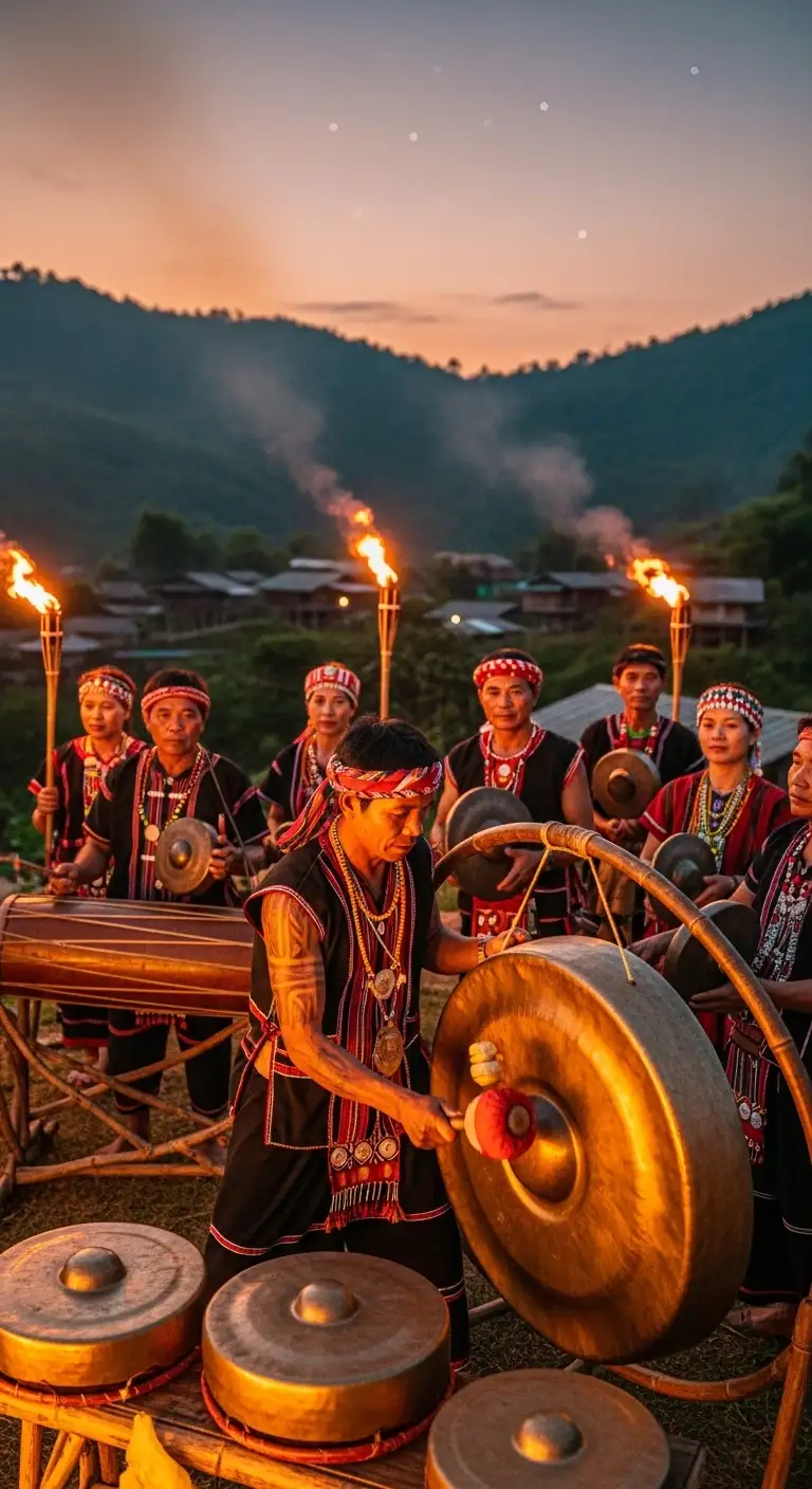 Gong Exchanges & PerformancesThe main highlight, where hundreds of artisans from various ethnic groups gather to play complex, resonant polyphonic music in large circles around a sacred bonfire.