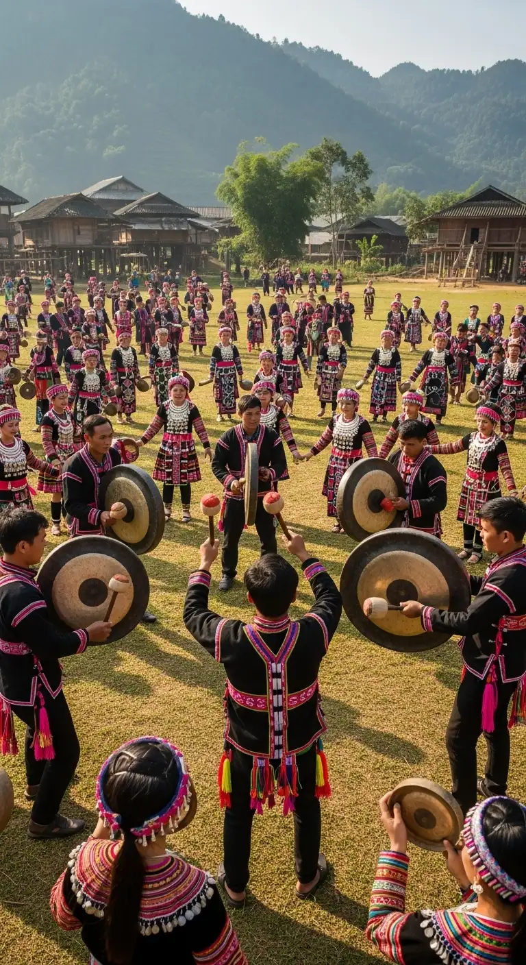 The Central Highlands Gong Culture Festival is a celebration of the profound spiritual and cultural heritage of the ethnic groups living in the Tây Nguyên mountains of Vietnam. More than just a musical performance, the gong is considered a sacred object—a symbol of wealth, power, and the voice of the community and the spirits.