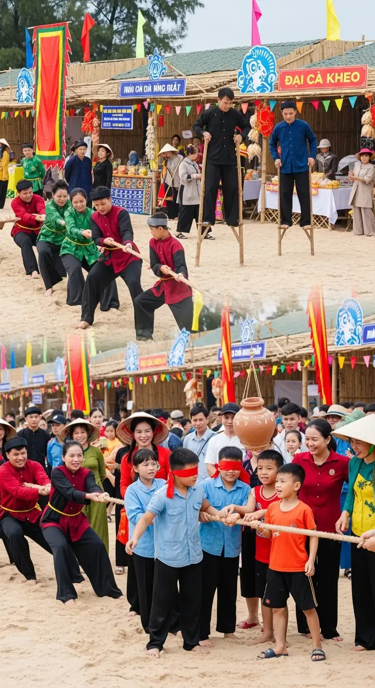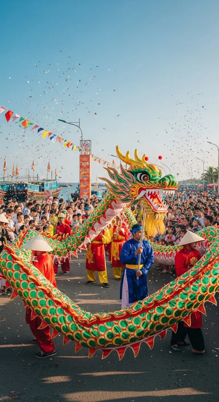 Folk Games: The streets come alive with folk games and competitions that mimic the daily lives of fishermen, such as net weaving, rowing races, and martial arts demonstrations.