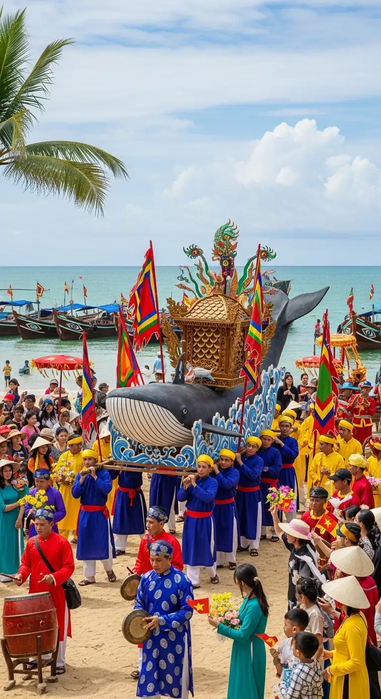 Ritual Significance: The festival is centered around venerating the sacred bones of deceased whales, which are interred at temples like the Thắng Tam Temple in Vũng Tàu.