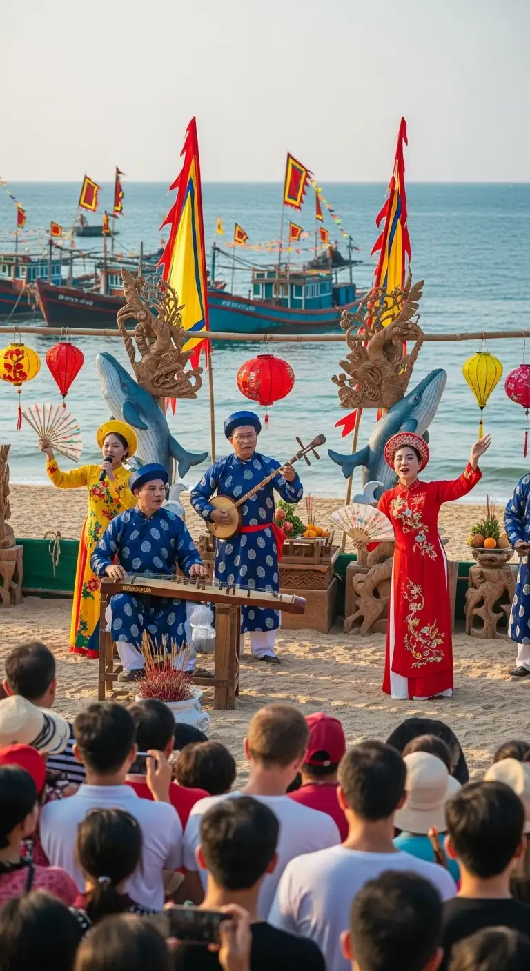 Traditional Performances: Visitors can enjoy classical Vietnamese opera (Hát Bội or Tuồng) and unique local singing and dancing known as Hát Bá Trạo (a traditional chant performed by fishermen to welcome the boat back to shore and praise the sea god).