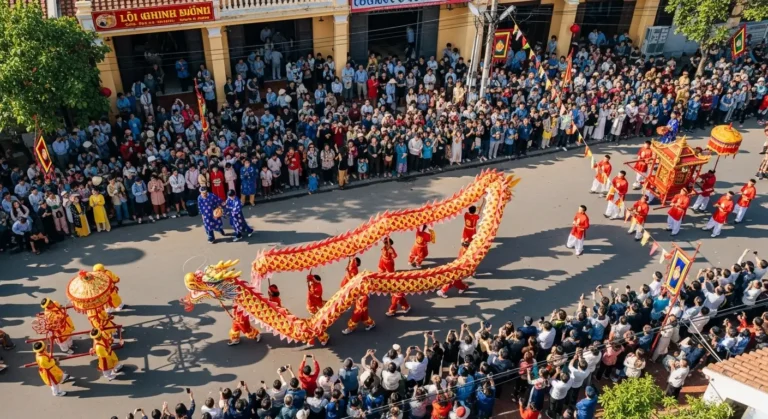 The three-day festival is divided into a ceremonial section (Lễ) and a festive section (Hội), creating a spectacular cultural experience.