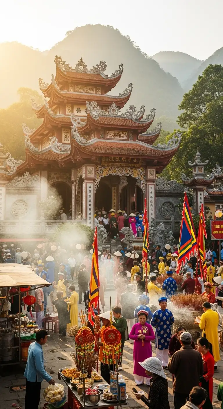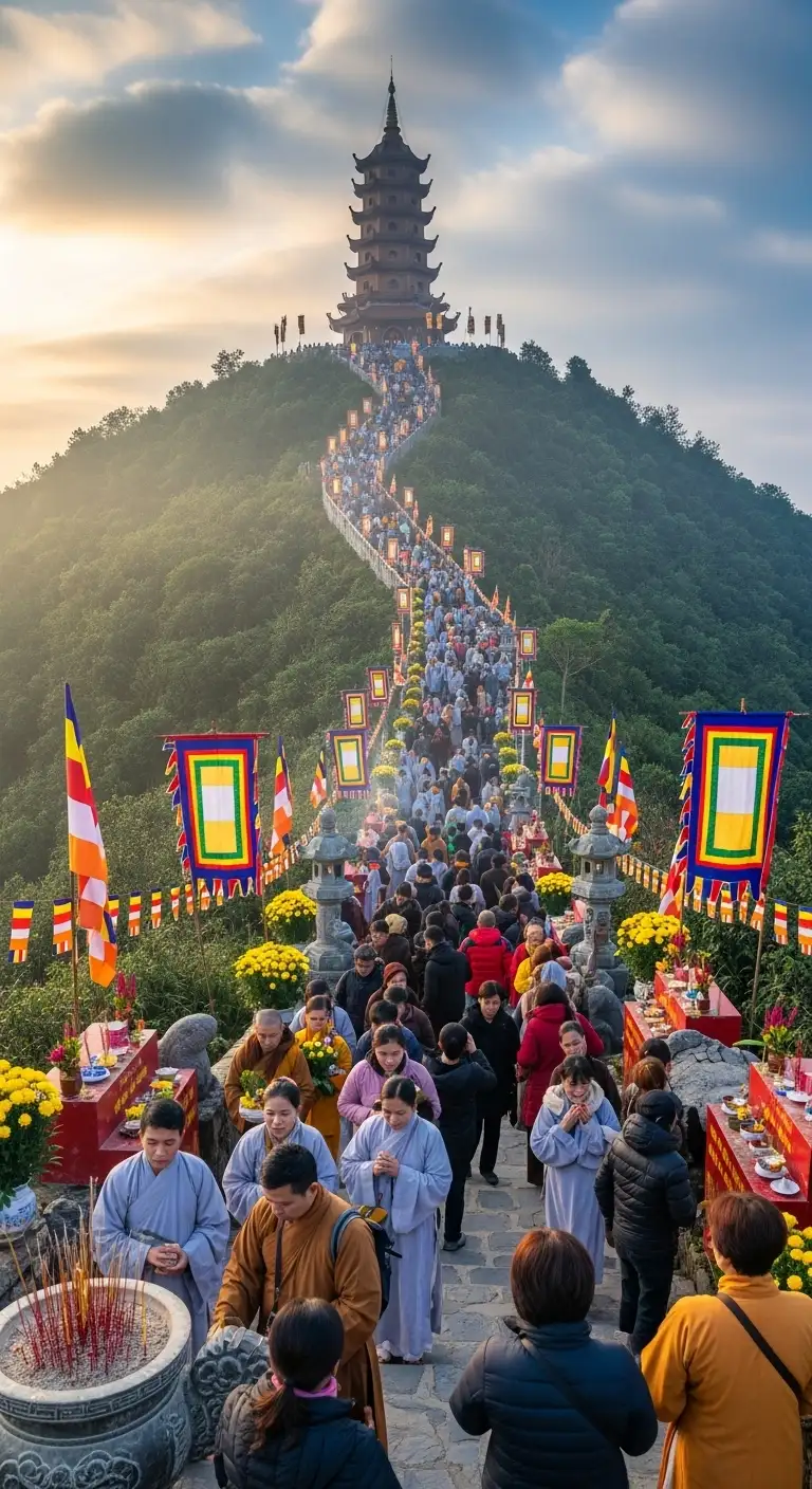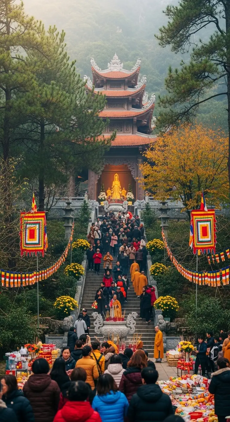 The journey up Yên Tử Mountain is a central part of the festival, featuring temples and relics that trace the King-Monk’s life.
