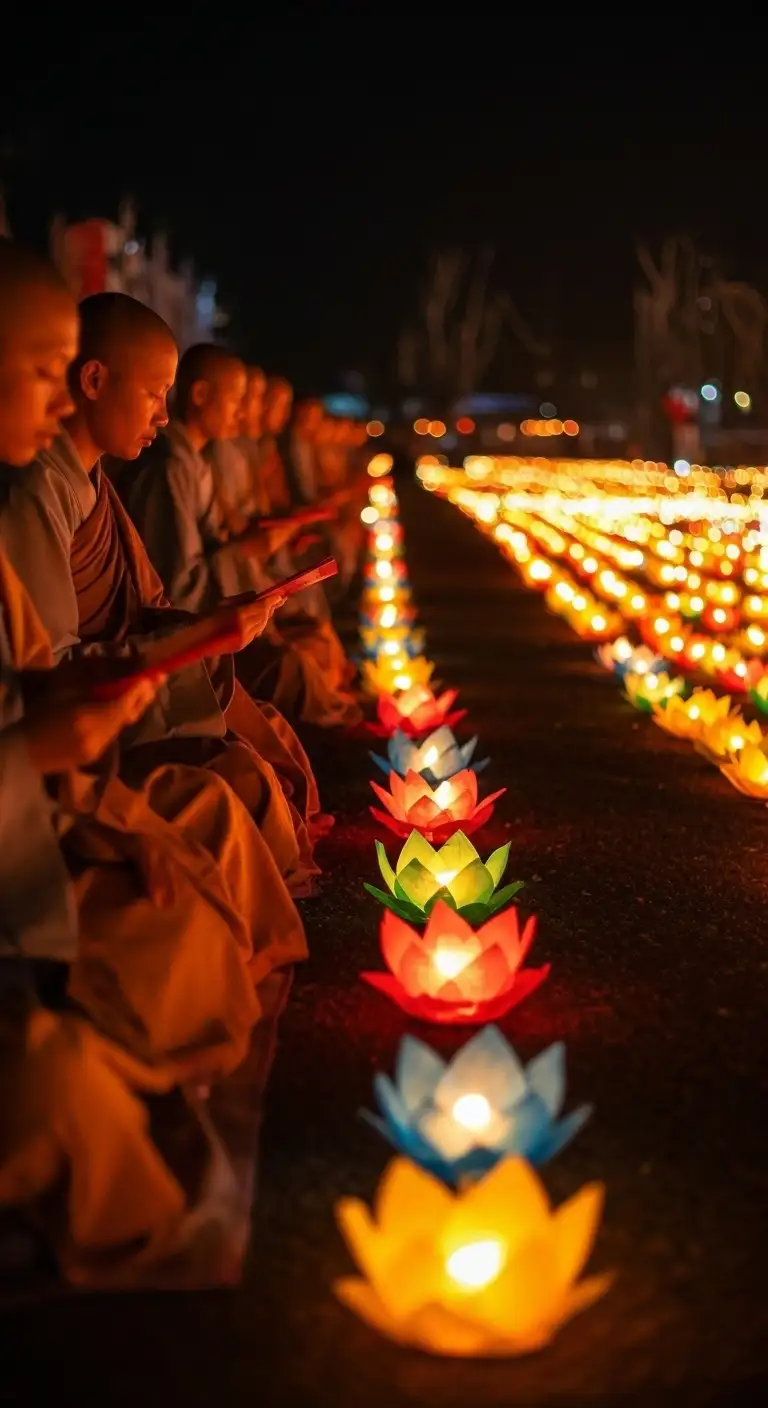 Lantern Processions (Rước Đèn): In many areas, especially in cities like Huế and Ho Chi Minh City, elaborate parades and ceremonies involve releasing illuminated lotus lanterns (hoa đăng) onto rivers. These lanterns symbolize light, enlightenment, and bringing peace to the world.