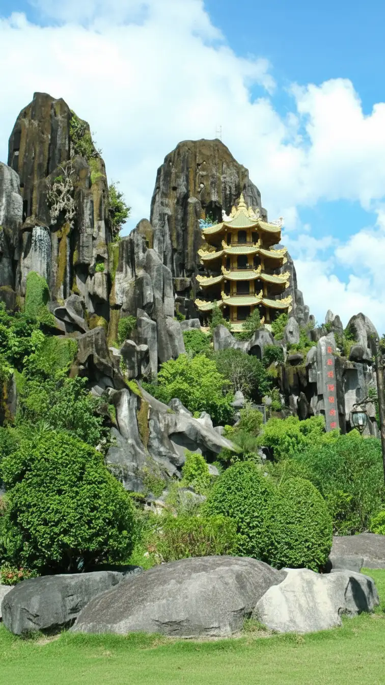 LocationQuan The Am Pagoda, Marble Mountains (Ngũ Hành Sơn), Da Nang City, Central Vietnam.The central spiritual hub of Da Nang.
