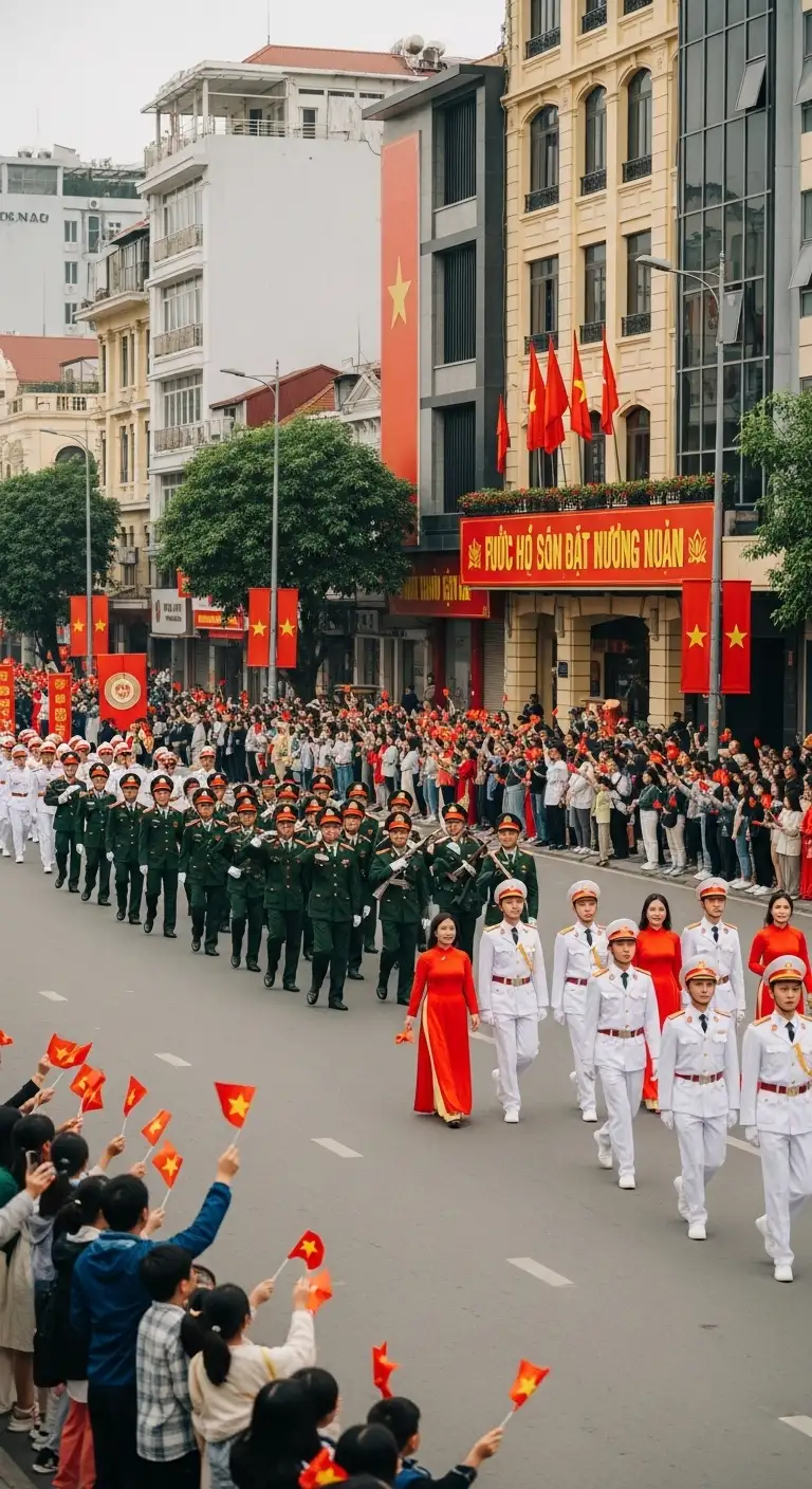 Grand Parades: A large military and civilian parade is typically held in Ho Chi Minh City along major boulevards, featuring floats, marching bands, and thousands of participants, showcasing national strength and unity.
