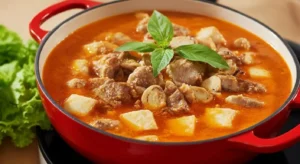 Beef Hotpot is a popular Vietnamese dish featuring tender beef cooked in a rich, flavorful broth mad..