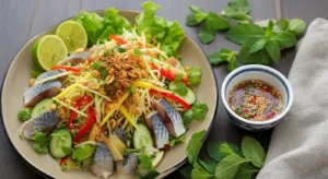 Fish Salad is a refreshing Vietnamese dish made from thinly sliced raw fish mixed with herbs, lime j…