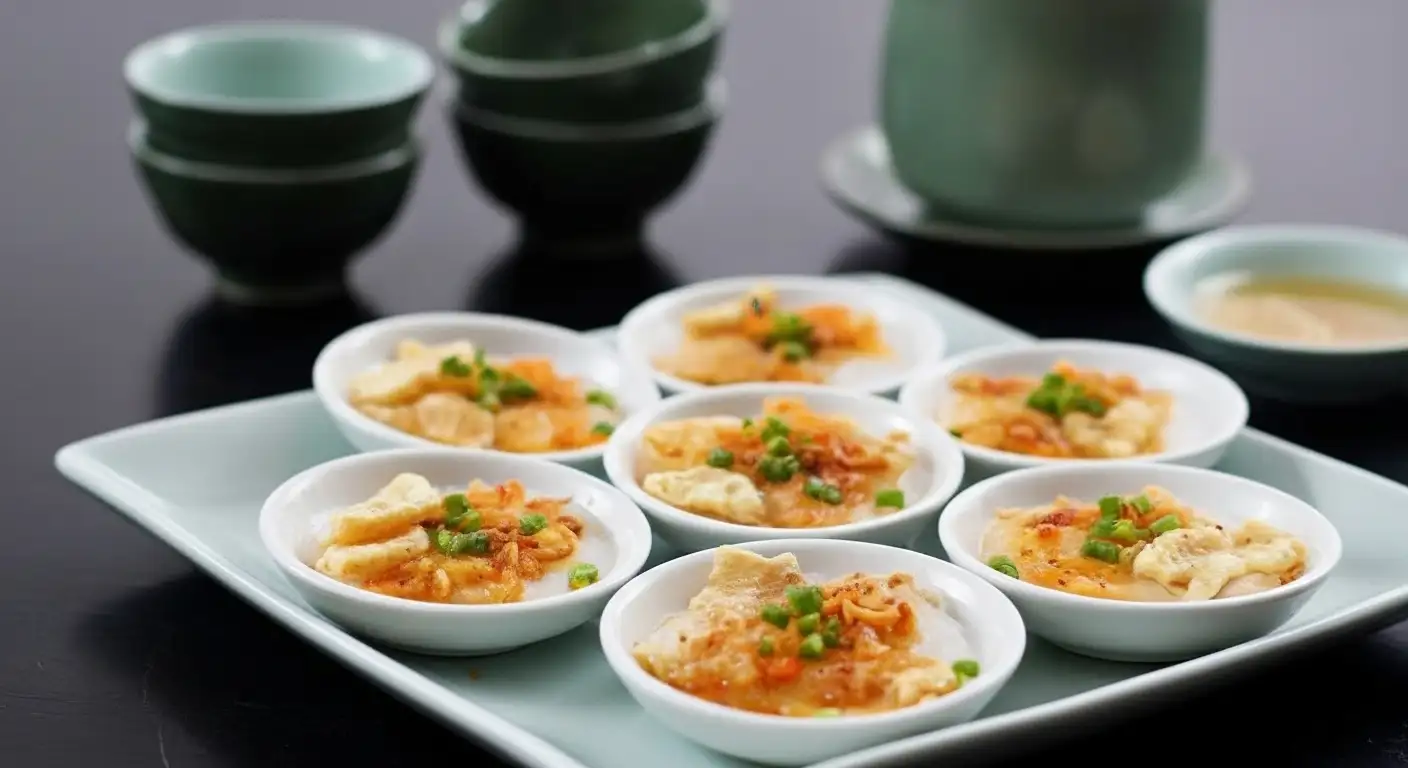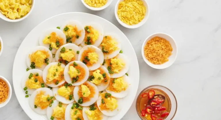 Bánh Bèo (pronounced Ban Bey-Oh) is a quintessential Vietnamese delicacy, hailing from the former imperial capital of Huế in the Central region. These delicate, small steamed rice cakes are famous for their elegant, bite-sized form and harmonious blend of textures and flavors—a true representation of the refined art of Central Vietnamese royal cuisine.