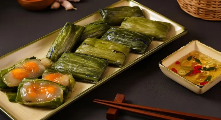Experience: The banana leaf wrapping imparts a subtle, fresh, earthy aroma to the dumpling as it steams. The dumplings are often served still wrapped, usually tied together in pairs.