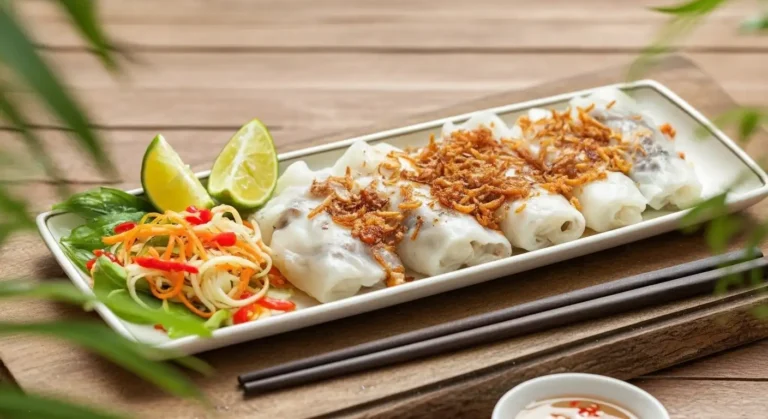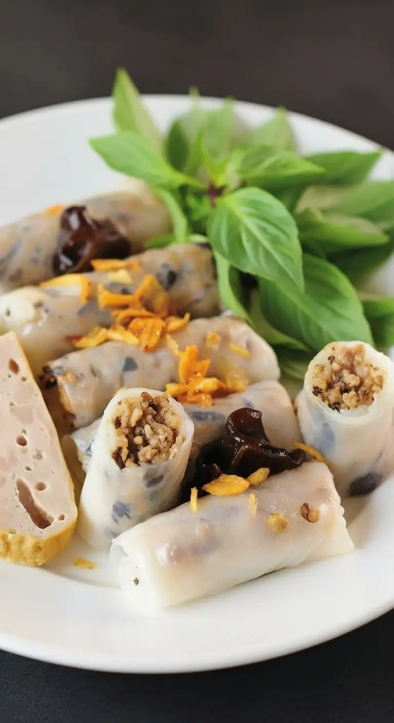 Bánh Cuốn is a beloved Vietnamese dish of delicate, steamed rice noodle rolls. Originating in Northern Vietnam, particularly the Thanh Trì area of Hanoi, it is a testament to the simplicity and refinement of Northern Vietnamese cuisine.