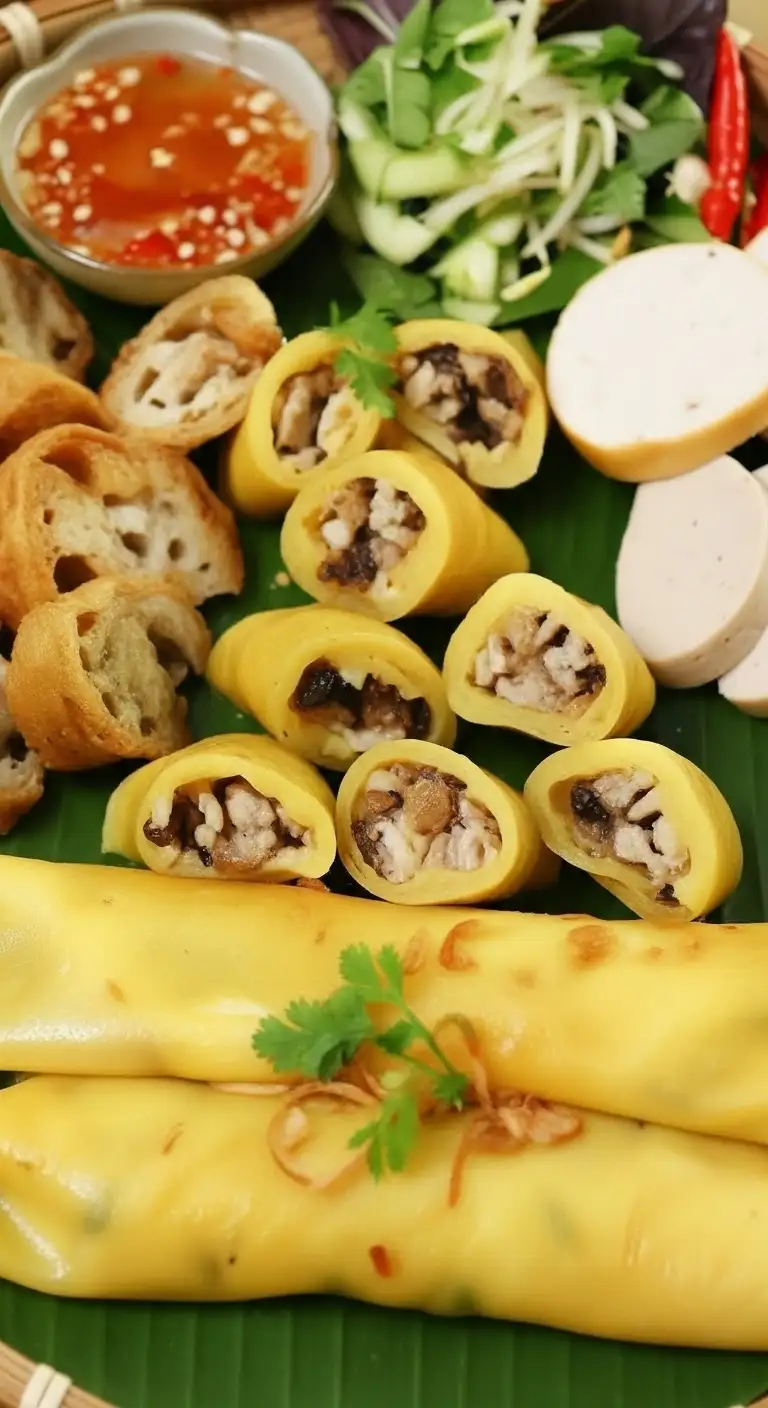 The Wrapper (Bánh): This is the soul of the dish. It is made from a batter of fermented rice flour and water (sometimes with a little tapioca starch for elasticity). This batter is ladled onto a cloth steamer and cooked for mere seconds until it forms a gossamer-thin sheet. It is then gently removed with a bamboo stick, often right in front of the customer.
