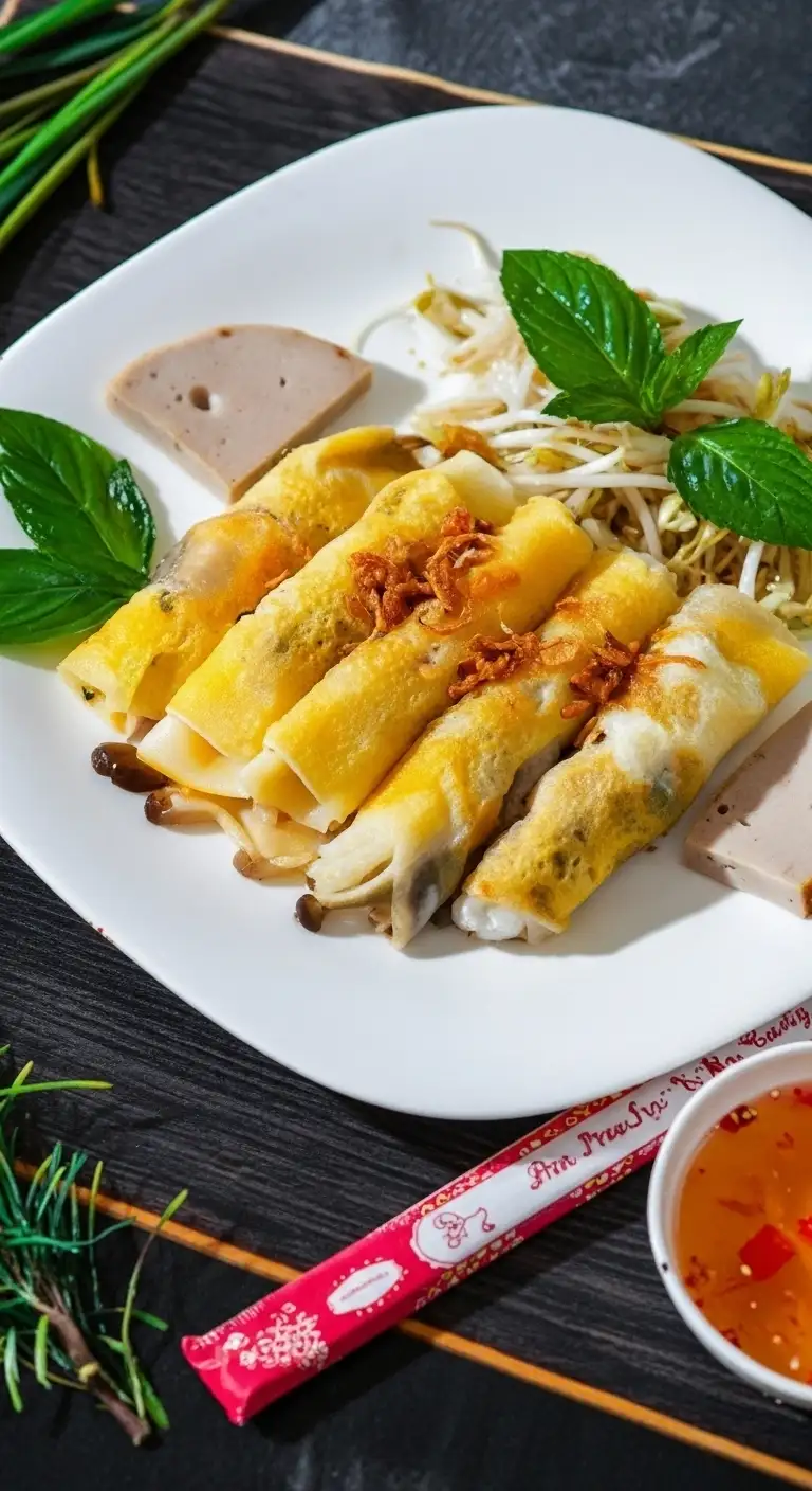 | Bánh Cuốn Trứng | Egg Filling | A popular variation where a whole egg is cracked onto the thin rice sheet while it steams, creating a tender, egg-laced roll. |