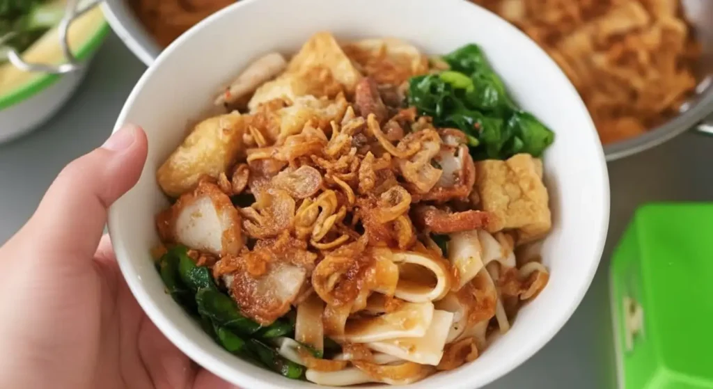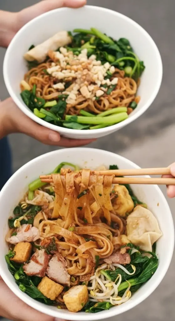 3. Mix and Slurp (Soup Style): Use your chopsticks and spoon to mix the ingredients slightly, ensuring the vegetables are coated in the broth. The wide, flat noodles require a hearty slurp!
