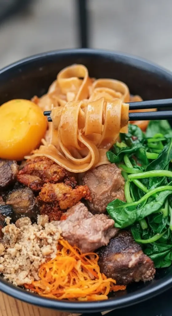 4. Toss Thoroughly (Dry Style): If you order the Trộn version, make sure to toss all the ingredients thoroughly to coat the noodles and toppings with the dressing before eating.