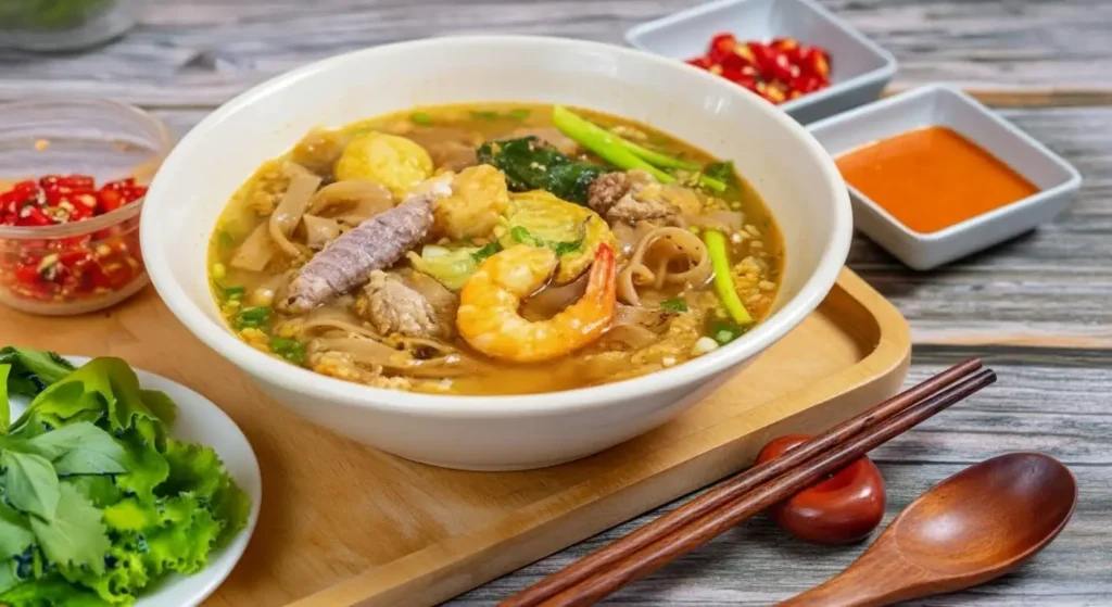 Bánh Đa Cua (pronounced “Bahn Dah Koo-ah”) is a quintessential Vietnamese noodle dish that hails from the port city of Hai Phong in Northern Vietnam. It is a hearty, flavorful, and colorful soup whose distinct character comes from two main elements: its unique reddish-brown noodles and its robust, seafood-rich broth made from freshwater crab.