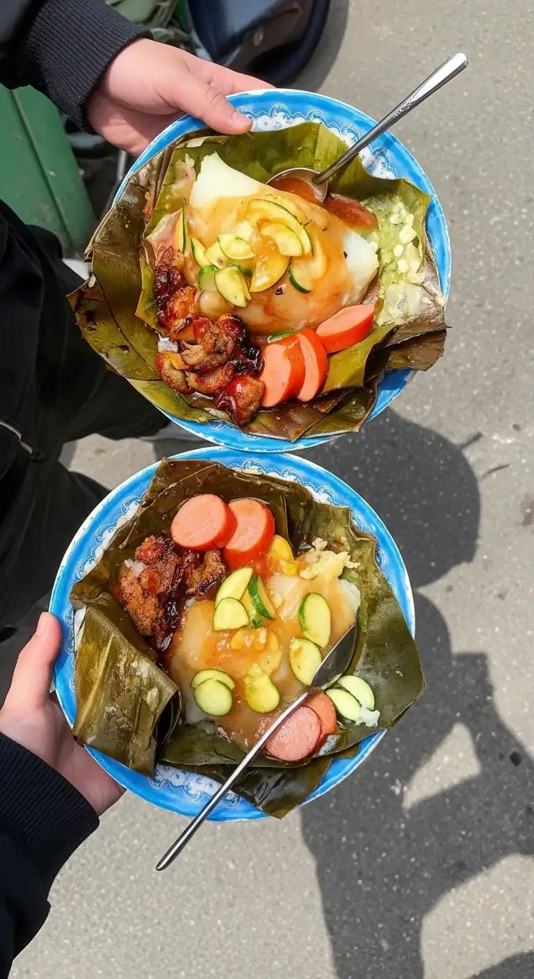 Wrapped in aromatic banana leaves, its appearance is as iconic as its soft, gelatinous texture. It’s a true taste of old Hanoi tradition.