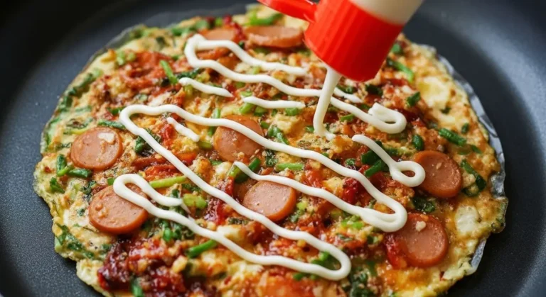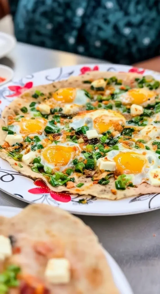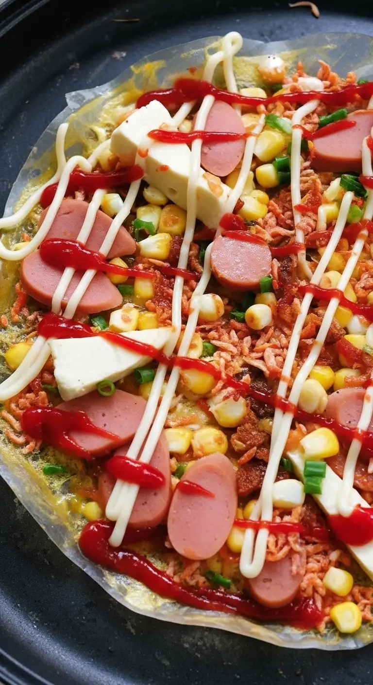 • The Toppings: A variety of small, finely chopped toppings are quickly scattered onto the wet egg mixture. Common savory toppings include: