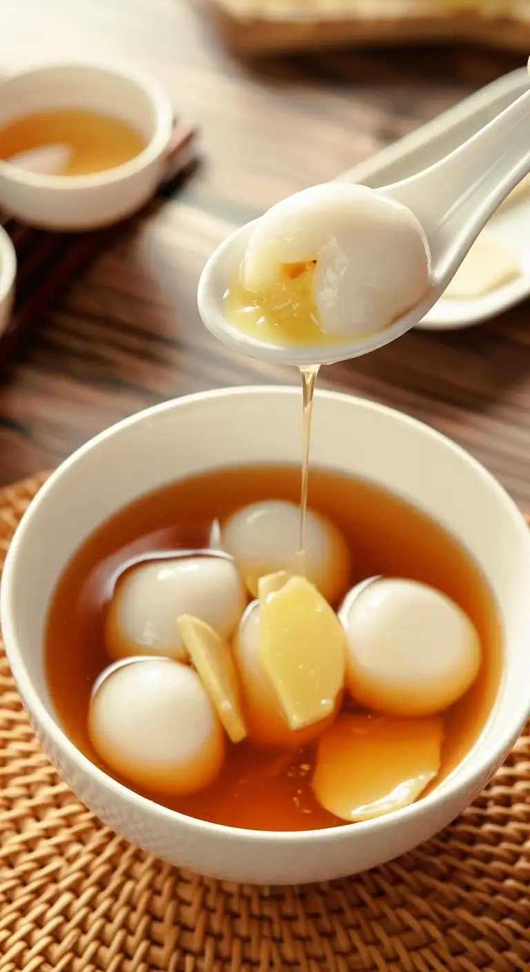 Served Warm: The dish is always served warm or hot to maximize the comforting fragrance of the ginger syrup and to ensure the glutinous rice ball is soft and chewy.