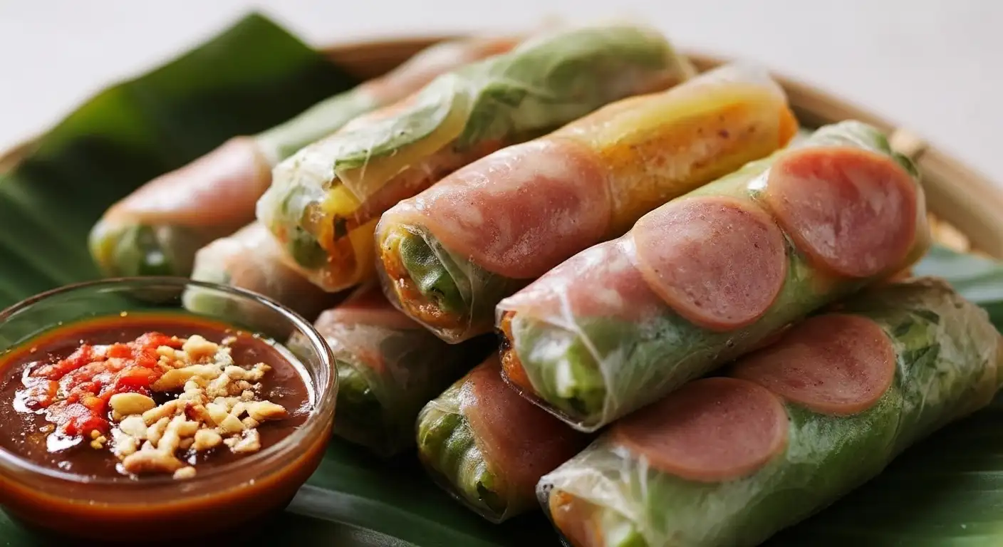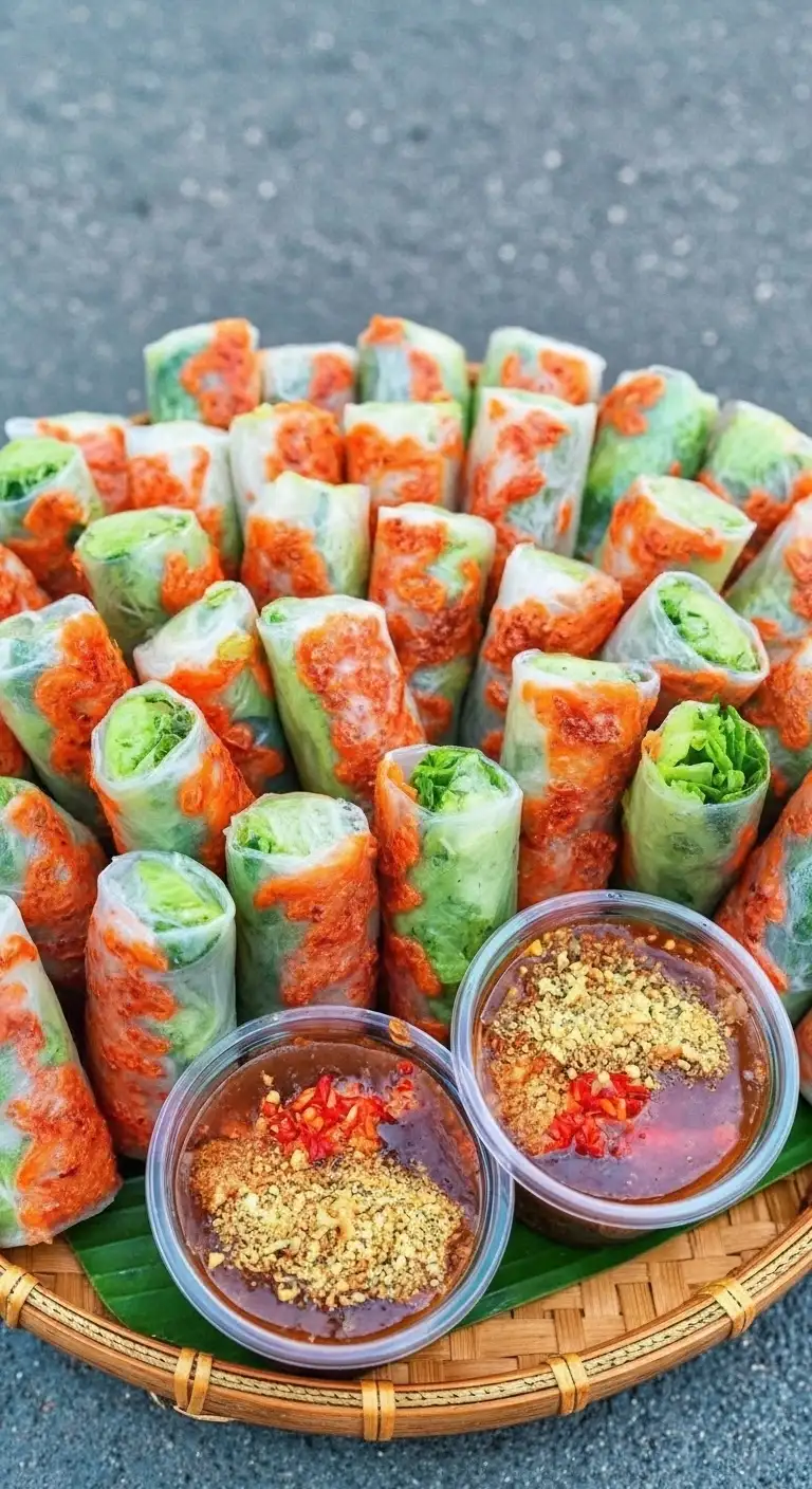 Bò Bía is a refreshing and complex Vietnamese spring roll, distinct from the more famous Gỏi Cuốn (fresh shrimp/pork rolls). Originating from the Chinese Popiah rolls, Bò Bía has been perfectly adapted to Vietnamese flavors, becoming a favorite street food and light snack, especially in the South.