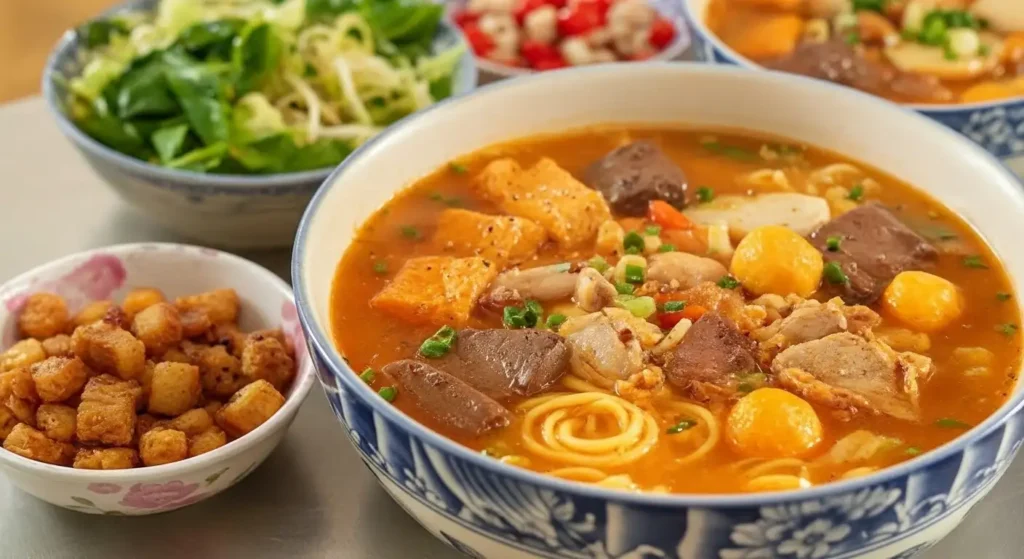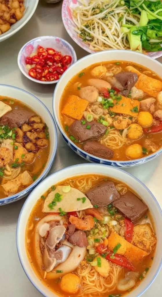 Southern Vietnam (Ho Chi Minh City)Richer, Sweeter, and Highly Customized. Southern cuisine favors sweetness, often adding sugar or coconut water.The bowl is more crowded. Toppings are numerous, often including sliced pork loaf, more cuts of pork, dried shrimp, and sometimes other seafood.Significantly sweeter broth and a larger, more varied set of extra toppings and condiments.