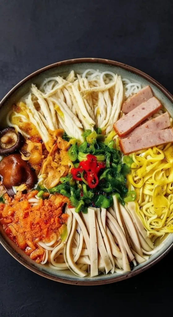 Mushrooms: Dried shiitake mushrooms are often included in the broth but sometimes served as a topping.