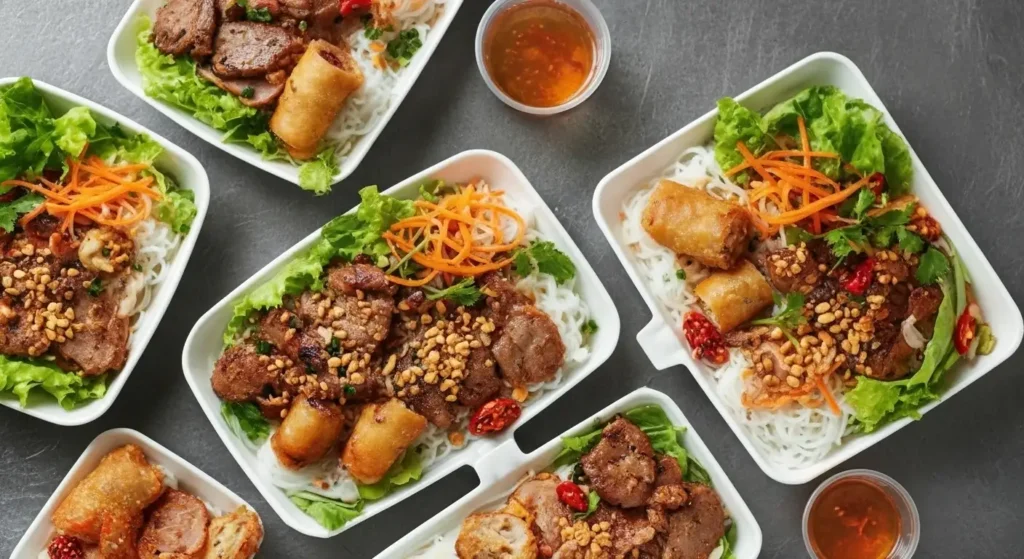 Spring RollsChả Giò (Crispy, deep-fried pork/shrimp rolls) are a standard, often mandatory, accompaniment.Nem Rán (Northern term for the roll) are often available but may be served differently, or the focus is entirely on the grilled meat.Available, but local Central rolls (Chả Ram) might be used, which are smaller and crunchier.
