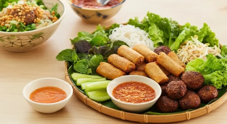| Spring Rolls | Chả Giò (Crispy, deep-fried pork/shrimp rolls) are a standard, often mandatory, accompaniment. | Nem Rán (Northern term for the roll) are often available but may be served differently, or the focus is entirely on the grilled meat. | Available, but local Central rolls (Chả Ram) might be used, which are smaller and crunchier. |
