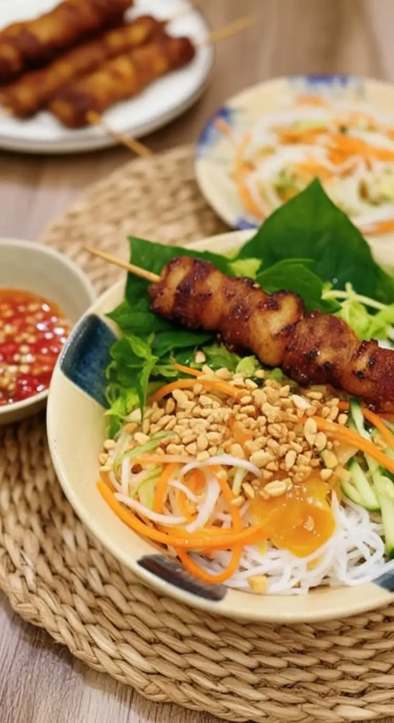 Bún Nem Nướng (Grilled Pork Sausage Noodles): This variation substitutes the grilled pork slices with nem nướng, a seasoned, slightly sweet, grilled ground pork sausage.
