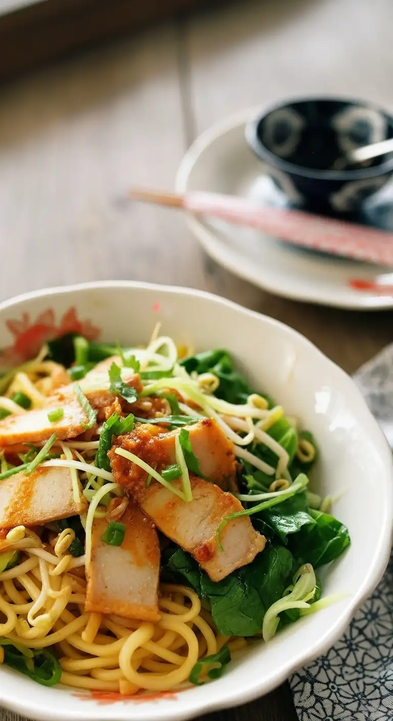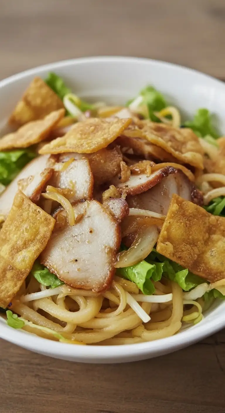 The Crunch: The dish is often topped with crispy squares of fried rice paper or pork cracklings, providing a vital textural contrast.