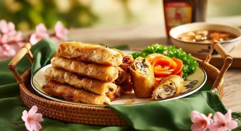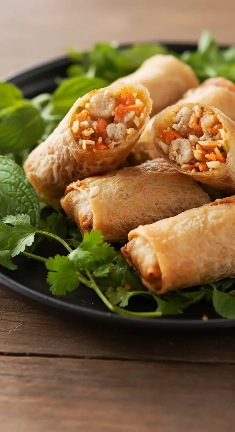 The Wrapper: What sets the Vietnamese fried roll apart is the use of rice paper (bánh tráng) as the wrapper. When deep-fried, the rice paper blisters and crisps up, creating a unique, brittle, and bubbly texture that is much lighter than the flour-based wrappers used in Chinese egg rolls.
