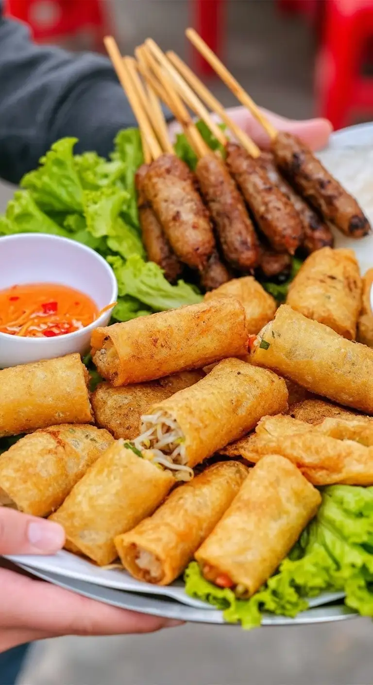 | Serving | Often served with Bún Chả (grilled pork and noodle dish). | Served as a side or appetizer with rice paper and lots of fresh local herbs. | Commonly used as a topping for Bún Chả Giò (vermicelli noodle salad). |