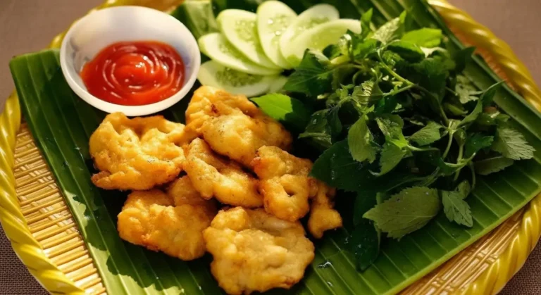 As a Main Dish (The Classic): The best way to enjoy Chả Mực is with Bánh Cuốn (steamed rice rolls). The hot, crispy, savory squid cake is dipped into the traditional light, sweet, and sour fish sauce (Nước Chấm), which complements the softness of the rice rolls.