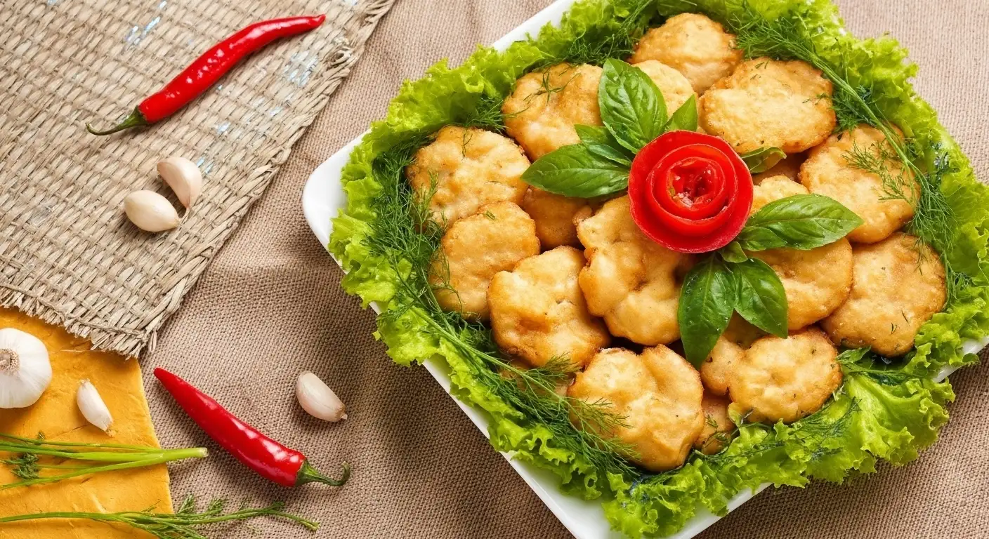 Chả Mực is a savory patty or cake made from fresh squid (usually cuttlefish or leaf squid), minced or pounded with spices and a little pork fat, shaped into discs, and then deep-fried until golden brown.